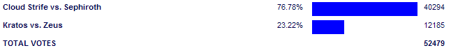 Cloud Strife vs. Sephiroth - 70.25% 92 for - 0 against |