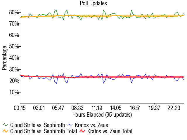At the very least, this might be the first match since like 2002 where Cloud had a good board vote. Thank you, God of War, for proving that something has a worse board vote than Final Fantasy 7.