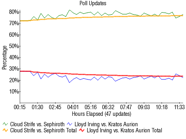 Despite all the so-called WARNING SALVOS fired in Link's direction about rivalries actually mattering, this site hating Final Fantasy 7 trumps it all. The contest effectively ended with this god-awful performance from the FF7 duo, barring some miracle upset taking Link down.