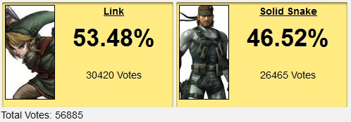 This poll was never really in doubt for Link despite all the cuts Snake made along the way, though it was Allen's way of giving a pittance poll to GameFAQs after clearly siding with Reddit for the entire contest. Granted Reddit didn't really see it that way and thought it was just GameFAQs needing to see Link win something to have any closure, but those people aren't exactly known for reading comprehension. Most people who followed this contest wanted Link to lose, including a lot of people who didn't care much for the rallying. Reddit's attitude was the issue.