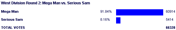 Spring 2009 - Three Mega Man games get in -- 2, 3, and X -- but only 2 manages to get out of the second round and that game would lose to to the NES titans of Zelda 1 and Mario 1 in round 3.