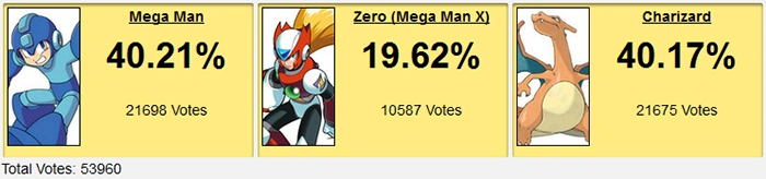 The divisional final round ended with one HELL of a match, because anyone looking at this would automatically assume Charizard wins. Mega Man and Zero have massive overlap, and Pokemon had just been beasting for this entire contest. It seemed like yet another raw deal for Mega Man, who has a contest history just loaded with raw deals. Look at this list: