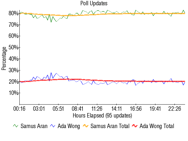 The disappointing thing is that RE seemed on an upswing. It performed respectably in the series contest, and both Ada and Leon did well in the first round of this contest. Even if Ada is a side character, you'd think RE4 would push her to do a bit better. Or maybe it's my fanboyism (semi-auto rifle in Mercs >>> everything) speaking. Or maybe RE4 was a hit because of the Gamecube and Ada got SFFd. Who knows.