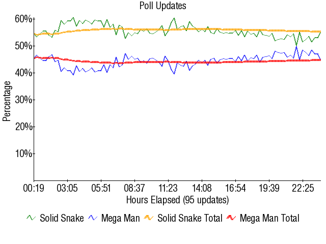 And thus, the Year of the Snake was born. This wasn't the first time Snake would shock the hell out of those paying close attention to contests, but more on that when it's applicable. 55-45 isn't so great a match in most cases, but look at the prior two Snake/Mega Man matches.