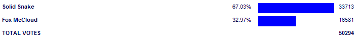 Solid Snake - 67.27% 81 for - 0 against |