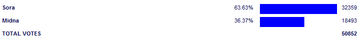 Midna had one of the weaker vote-in performances among those who placed from them, so it was no surprise she'd be stuck as 16 seed fodder in this contest. But even with her loss as a given, she helped prove a few things about Sora.