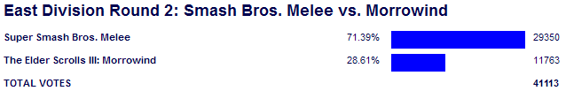 Unless you were a believer the Melee fanbase would rally their asses off or Morrowind boosted inexplicably between 2009 and 2010, Brawl was basically the favorite going in.