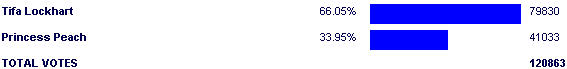 Tifa Lockhart - 64.05% 106 for - 1 against |