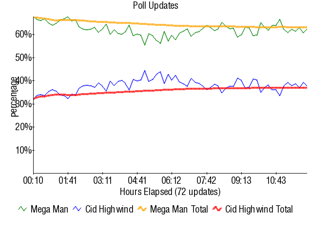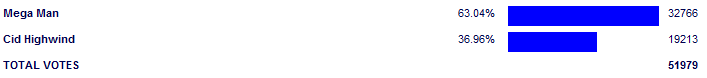 In actuality, Cid didn't do that bad here. Yes, he got blown out. But for whatever reason, Mega Man's whole series came back in a huge way this contest and could very well be back near 2002 levels. He did well, Proto Man won the board vote against Snake, and Zero also did very well for himself. Mega Man's just one of those characters that would suffer from 4ways because he overlaps with everything.