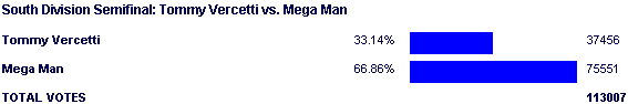 People were more reasonable with Vercetti's stock after he bombed in 2003, though most were smart enough to not have him making it past Mega Man. Had Donkey Kong pulled off the upset, Vercetti would have gone down as a much bigger bust than history shows. Vercetti has been in both contests since this one, but he was never able to live up to what people first expected of him.