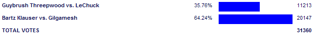 Bartz Klauser vs. Gilgamesh - 58.16% 108 for - 5 against |