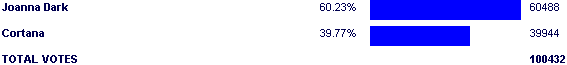 Meanwhile, Joanna Dark might not be beast-level popular, but she at least has some things going for her, most notably the fact that she has more than 4 fans. Perfect Dark was a million seller on a Nintendo system, and Perfect Dark Zero being on the Xbox 360 was the perfect factor to help stem whatever Halo carryover that Cortana may have had going for her coming into the match.