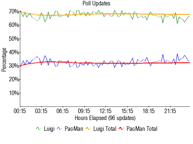 I'm really confused as to why there was such a surprise during the actual match between Luigi and Pac Man. Pac Man did around what he was expected to do based on the '03 stats. If you ask me, the match was about as ho-hum as a match could get; the only thing to be drawn from this match would be that Luigi technically underperformed, and given that his hyped second round match with Yoshi was right around the corner, any weakness in the armor could have been disastrous for him. I maintained that Luigi was the underdog in that match from the start, and when you factor in the results of his match with Pac Man here, the imminent Yoshi/Luigi result wasn't all that hard to see coming, despite the fact that the board was split virtually down the middle on that match.