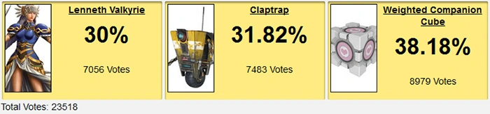 This match was interesting for about 5 minutes when Lenneth was winning early, but then the second update hit and things returned to normal. We expected Cube > Claptrap > Lenneth, and that's what we got---