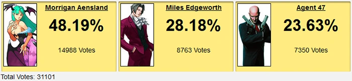 This was one of those debated matches that really confused me, mainly because I had no idea why there was a debate at all. Edgey was supposed to beat Morrigan with Marvel vs Capcom 3 behind her? even funnier, Agent 47 was supposed to do it with a series no one will ever care about on GameFAQs? That just floored me. Not saying my picks were much good this contest, but there are still some matches where the debate really has me at a loss. This was one of them.