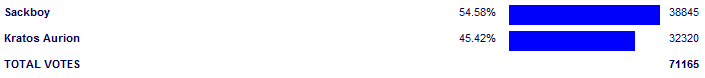There are two other major points about this match. One, it's clear LittleBigPlanet has suffered from always being in polls with Metal Gear Solid 4. It finally got the chance to be in a poll alone, and did really well. Secondly, it's time to stop nominating Tales of Symphonia characters. None of them have ever amounted to anything, and ironically the only one likely to have any strength is Kratos himself. So nominate Kratos until he wins. Everyone else can go away, especially those who keep popping in from other games in the series.
