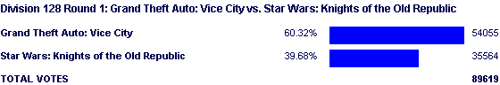 ...or was it? In 48 hours, this entire poll managed 90000 votes. We've had 24 hour polls in the past that have horribly outscored this one, so Vice City wasn't locked into the sweet sixteen just yet. It would have to earn the spot.