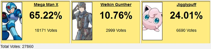 Welkin was so close to 3K votes. Getting doubled by Jigglypuff and... sextupled by Mega Man X means you ain't shit. I wonder what obscure JRPG character is going to show up this year? Who will be our Welkin Gunther?