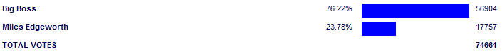 AntiBlowoutFAQs or not, this match proved any character can look really good if put against the right opponent. Edgey is a great character and carries a lot of the Phoenix Wright series, but he flirts with the fodder line annually in contests. He might get a slight boost from Ace Attorney Investigations next year, but he'd have to get paired against complete trash to ever win a match. Like Guybrush Threepwood, for example.